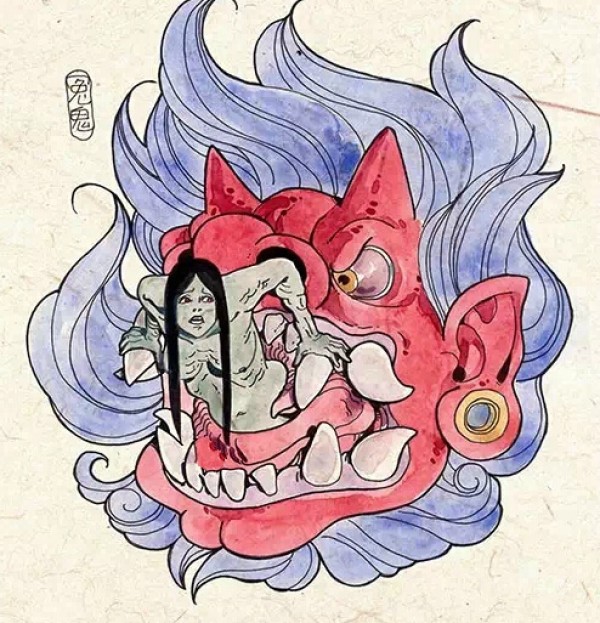 半甲唐狮手稿 传统的9款唐狮主题半甲纹身手稿图片