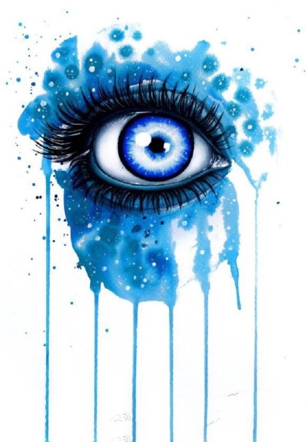 水彩眼睛手稿--9张七彩颜色的水彩色眼睛纹身手稿图案
