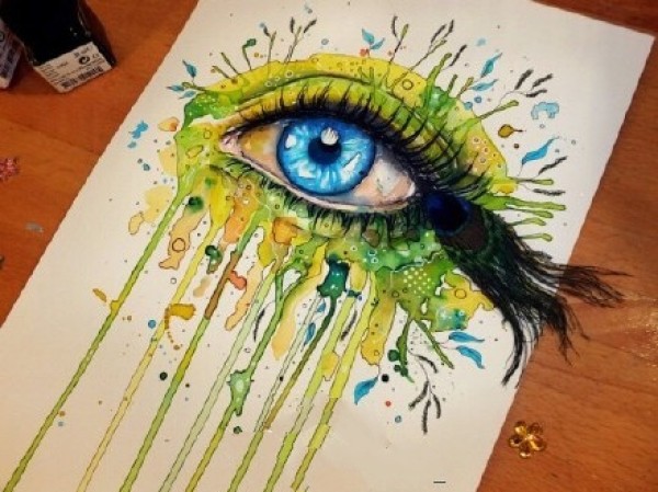 水彩眼睛手稿--9张七彩颜色的水彩色眼睛纹身手稿图案