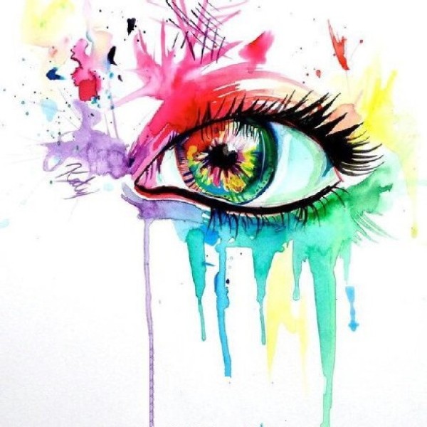水彩眼睛手稿--9张七彩颜色的水彩色眼睛纹身手稿图案
