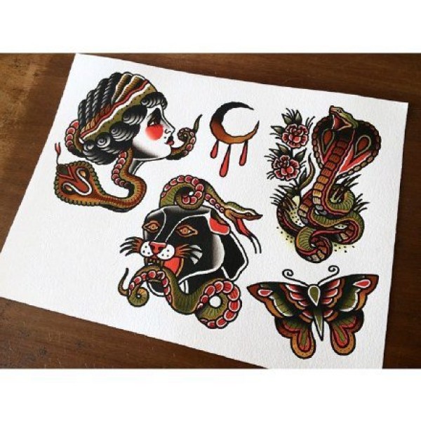 oldschool小图手稿--18张彩色精致的oldschool小图纹身手稿图案