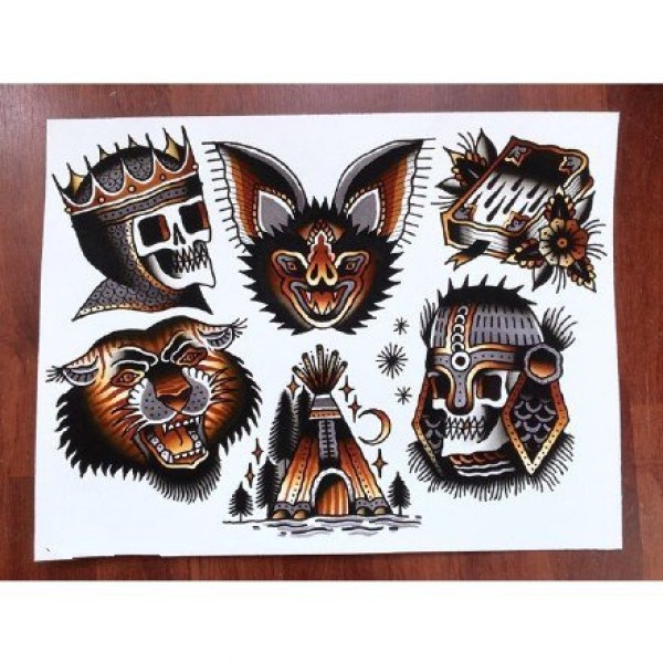 oldschool小图手稿--18张彩色精致的oldschool小图纹身手稿图案
