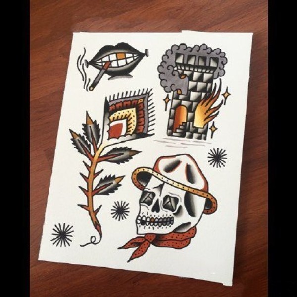 oldschool小图手稿--18张彩色精致的oldschool小图纹身手稿图案