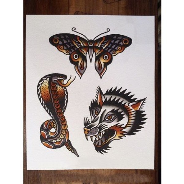 oldschool小图手稿--18张彩色精致的oldschool小图纹身手稿图案