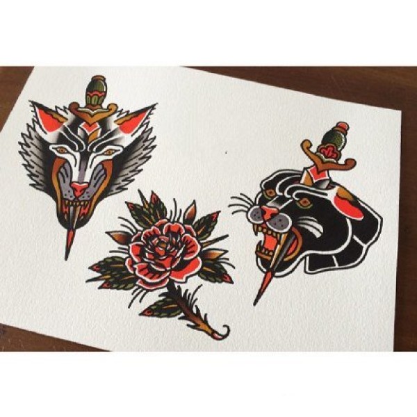 oldschool小图手稿--18张彩色精致的oldschool小图纹身手稿图案