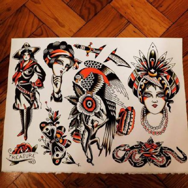 oldschool小图手稿--18张彩色精致的oldschool小图纹身手稿图案