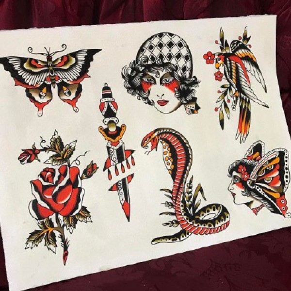 oldschool小图手稿--18张彩色精致的oldschool小图纹身手稿图案