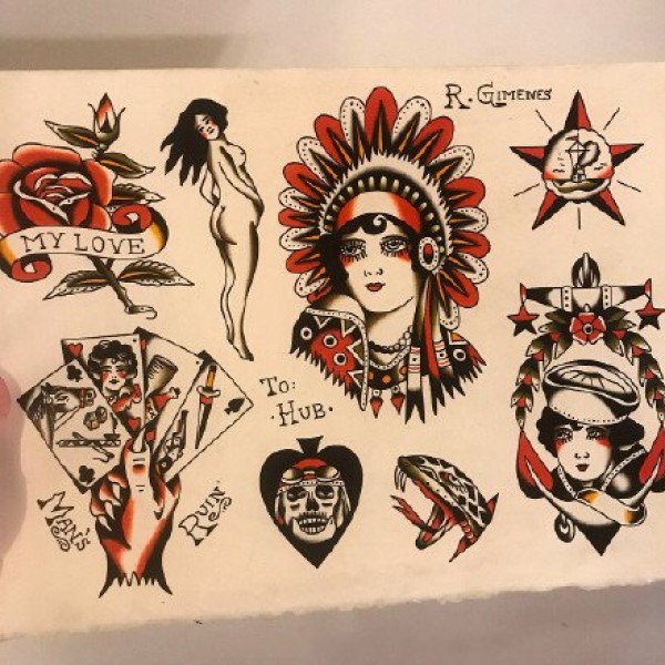 oldschool小图手稿--18张彩色精致的oldschool小图纹身手稿图案