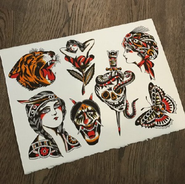 oldschool小图手稿--18张彩色精致的oldschool小图纹身手稿图案