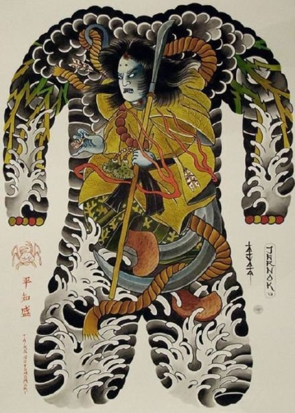 一组满背大气九龙拉棺纹身图案作品和手稿