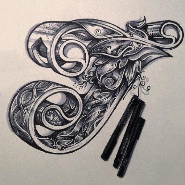 个性的创意字母的设计纹身手稿9张
