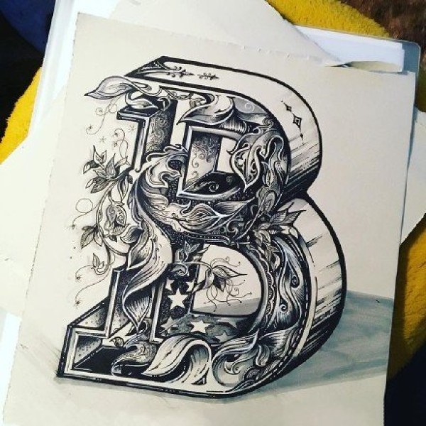 个性的创意字母的设计纹身手稿9张