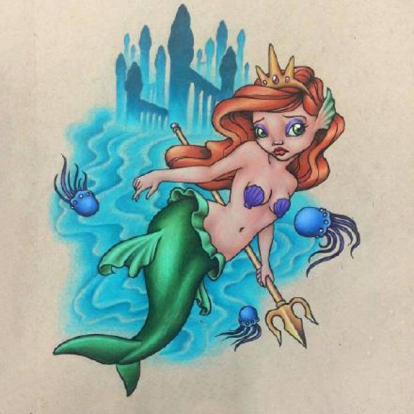 彩色人像手稿--new school风格的彩色人物肖像纹身手稿图案