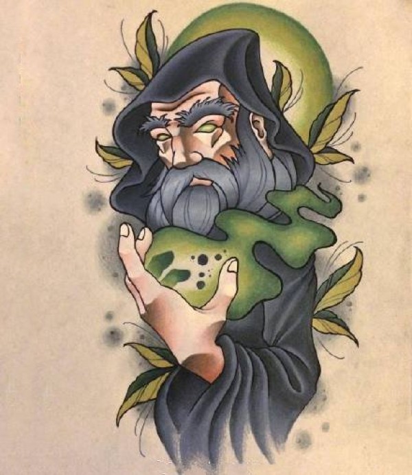 彩色人像手稿--new school风格的彩色人物肖像纹身手稿图案
