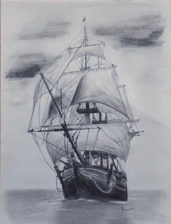 帆船素材--一组适合纹身的帆船纹身手稿素材图案