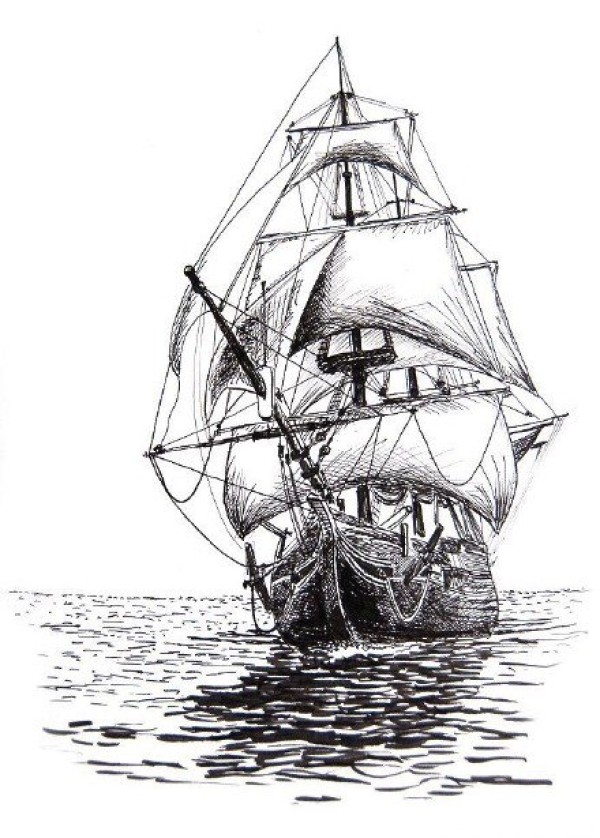 帆船素材--一组适合纹身的帆船纹身手稿素材图案