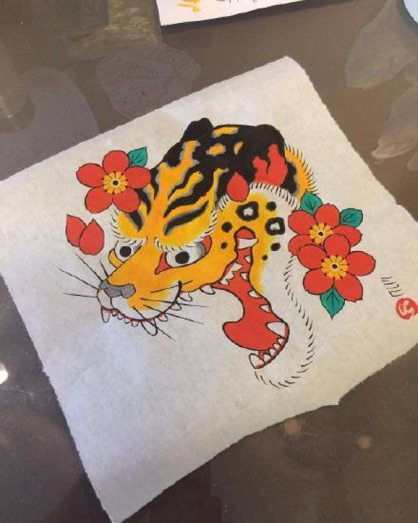 传统艺妓般若纹身图案手稿