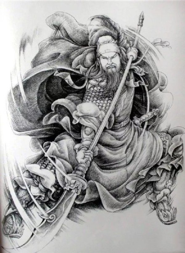 关公手稿--9张武财神关羽关公纹身手稿图案