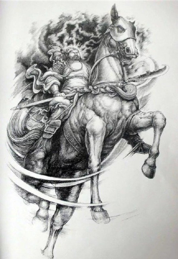 关公手稿--9张武财神关羽关公纹身手稿图案