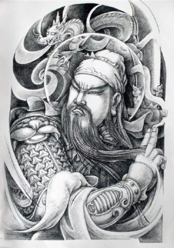 关公手稿--9张武财神关羽关公纹身手稿图案
