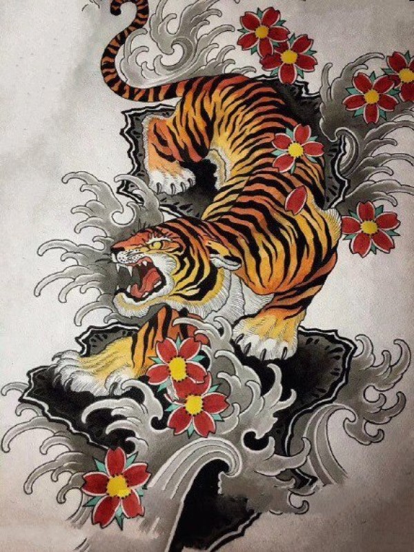 满背老虎手稿--几张适合满背纹身的老虎手稿图案