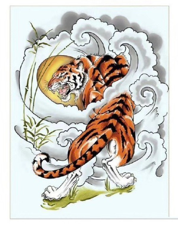 满背老虎手稿--几张适合满背纹身的老虎手稿图案