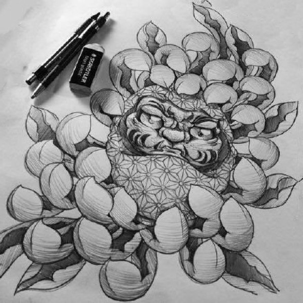 9张漂亮的达摩蛋纹身手稿图案欣赏