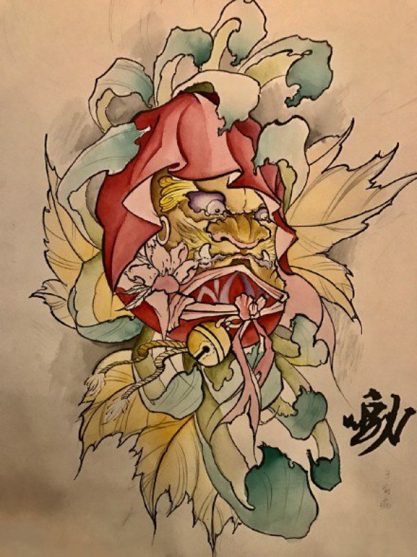 半甲唐狮手稿 传统的9款唐狮主题半甲纹身手稿图片