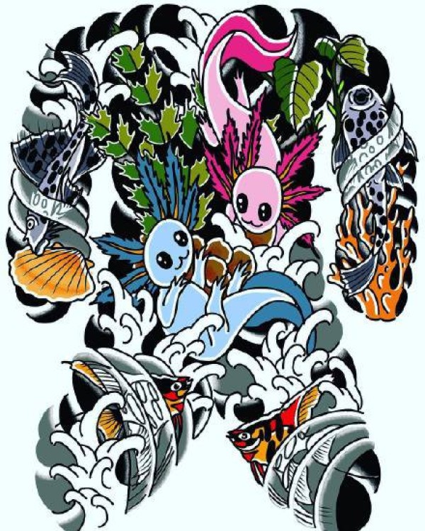 卡通大满背手稿--四张卡通风格的大满背手稿,谁纹一个