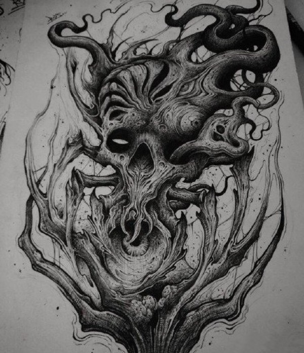 暗黑骷髅手稿--9张个性暗黑风格的骷髅纹身手稿图案