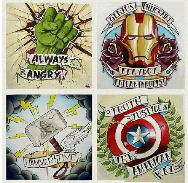 欧美科幻电影角色纹身手稿图案--大神David Tevenal的marvel手稿