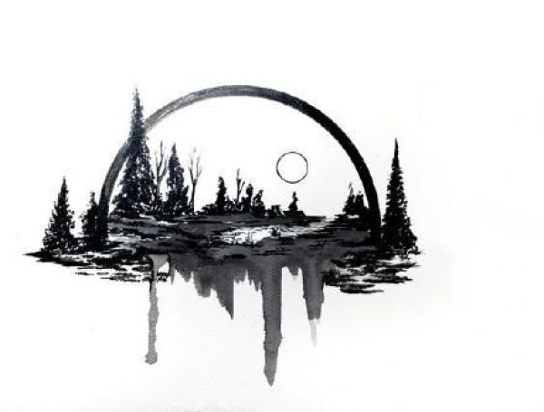 一组黑色的山水风景插画纹身手稿图案欣赏