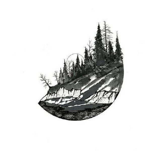 一组黑色的山水风景插画纹身手稿图案欣赏