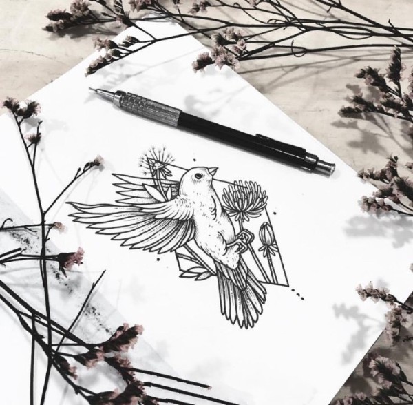 女生喜爱的简单手绘纹身图案来自于纹身师安雅