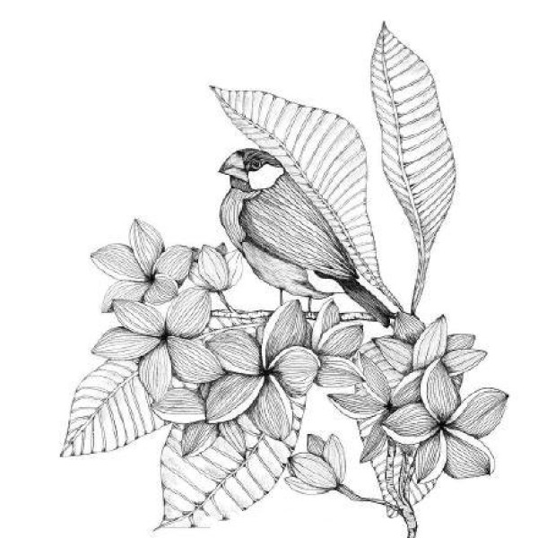 黑白色点刺花卉植物纹身手稿组图图案欣赏