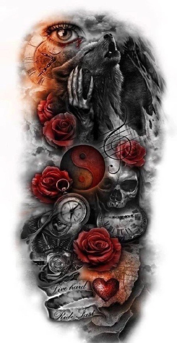 适合包大臂和腿部的欧美写实包臂黑灰写实纹身手稿