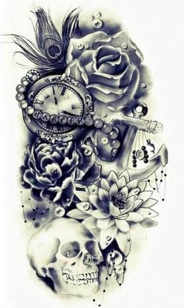 适合包大臂和腿部的欧美写实包臂黑灰写实纹身手稿