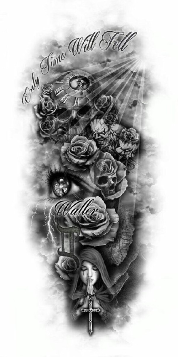 适合包大臂和腿部的欧美写实包臂黑灰写实纹身手稿
