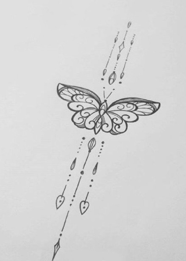 9张黑色的简约几何蝴蝶纹身手稿图片