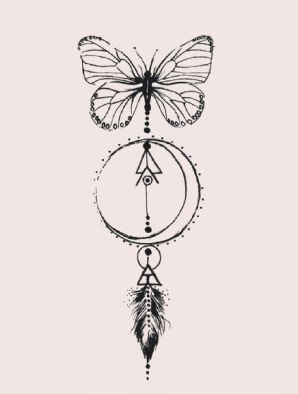 9张黑色的简约几何蝴蝶纹身手稿图片
