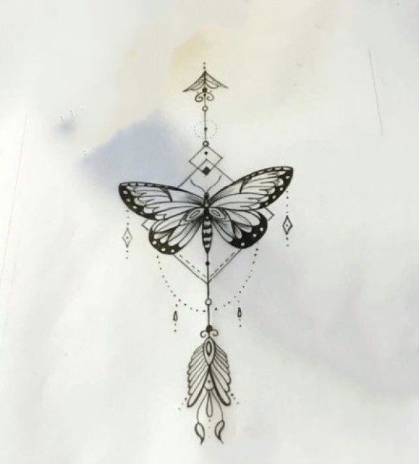 9张黑色的简约几何蝴蝶纹身手稿图片