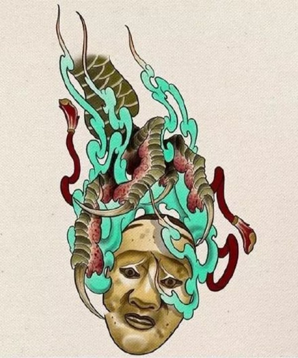 传统艺妓般若纹身图案手稿