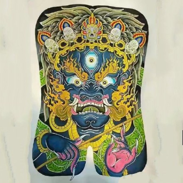 一组满背大气九龙拉棺纹身图案作品和手稿