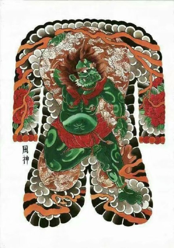 一组满背大气九龙拉棺纹身图案作品和手稿