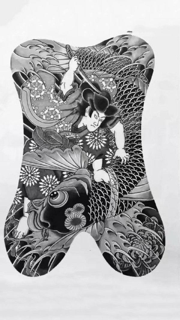 日式大板雾满背纹身手稿