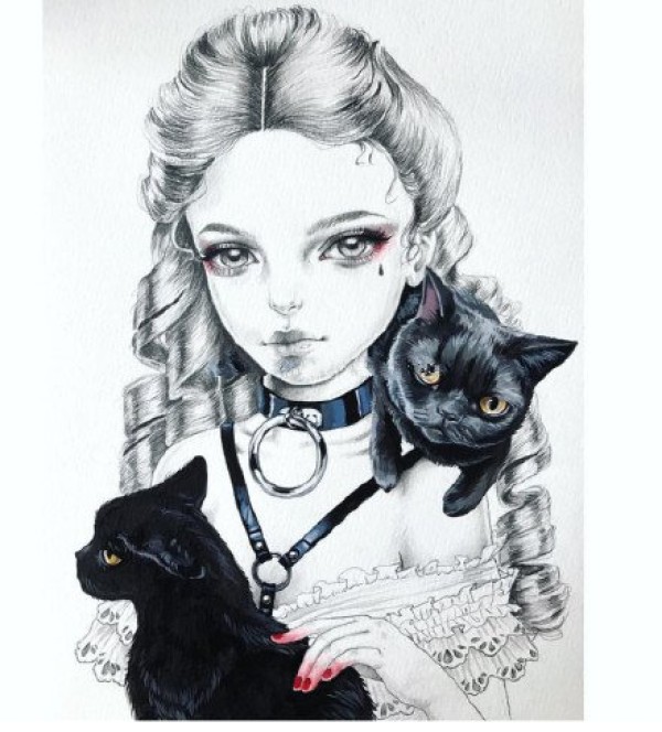 一组漂亮的动漫二次元女孩纹身手稿素材图案
