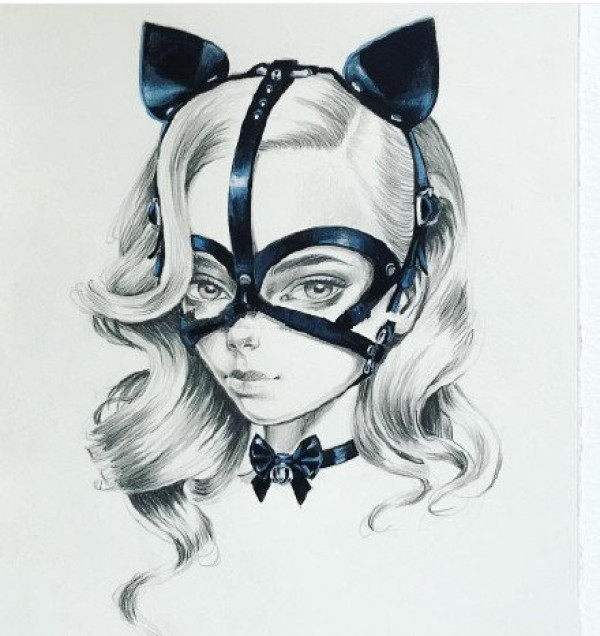 小清新猫头主题的一组猫神纹身素材手稿