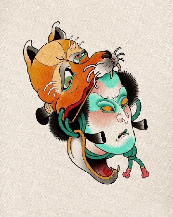 半甲唐狮手稿 传统的9款唐狮主题半甲纹身手稿图片