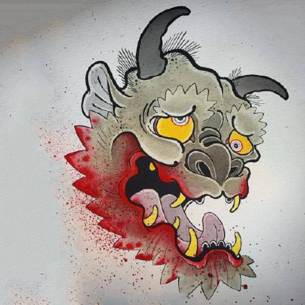 传统艺妓般若纹身图案手稿