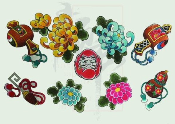 24张日式传统风格的小彩图纹身手稿小图案